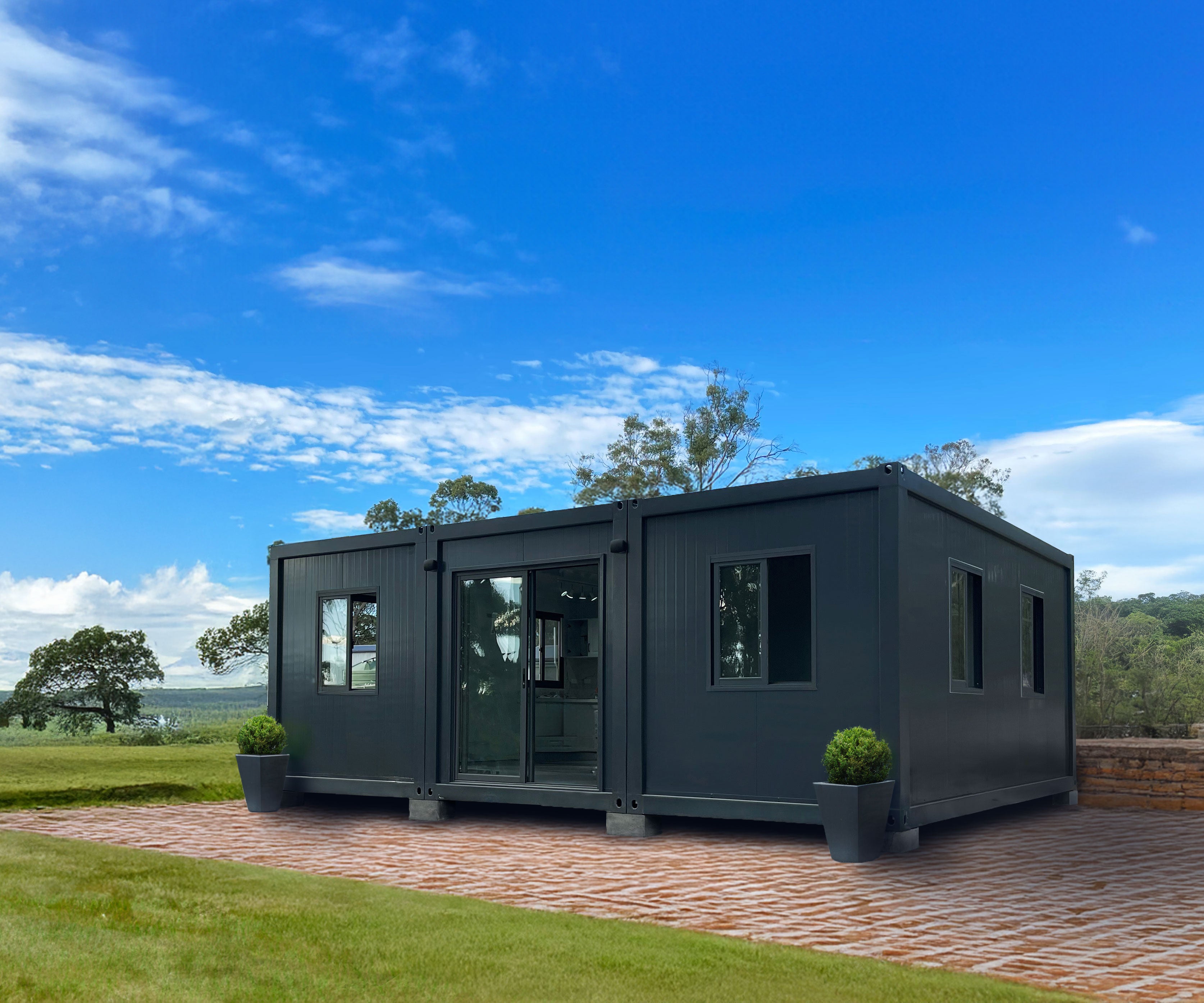The JULIET3 LARGE Basic modular container home. It is comprised of three 6m x 3m empty container units attached together, and includes a door, windows and electrical. Great as a canvas to modify and customise into your own perfect tiny home.