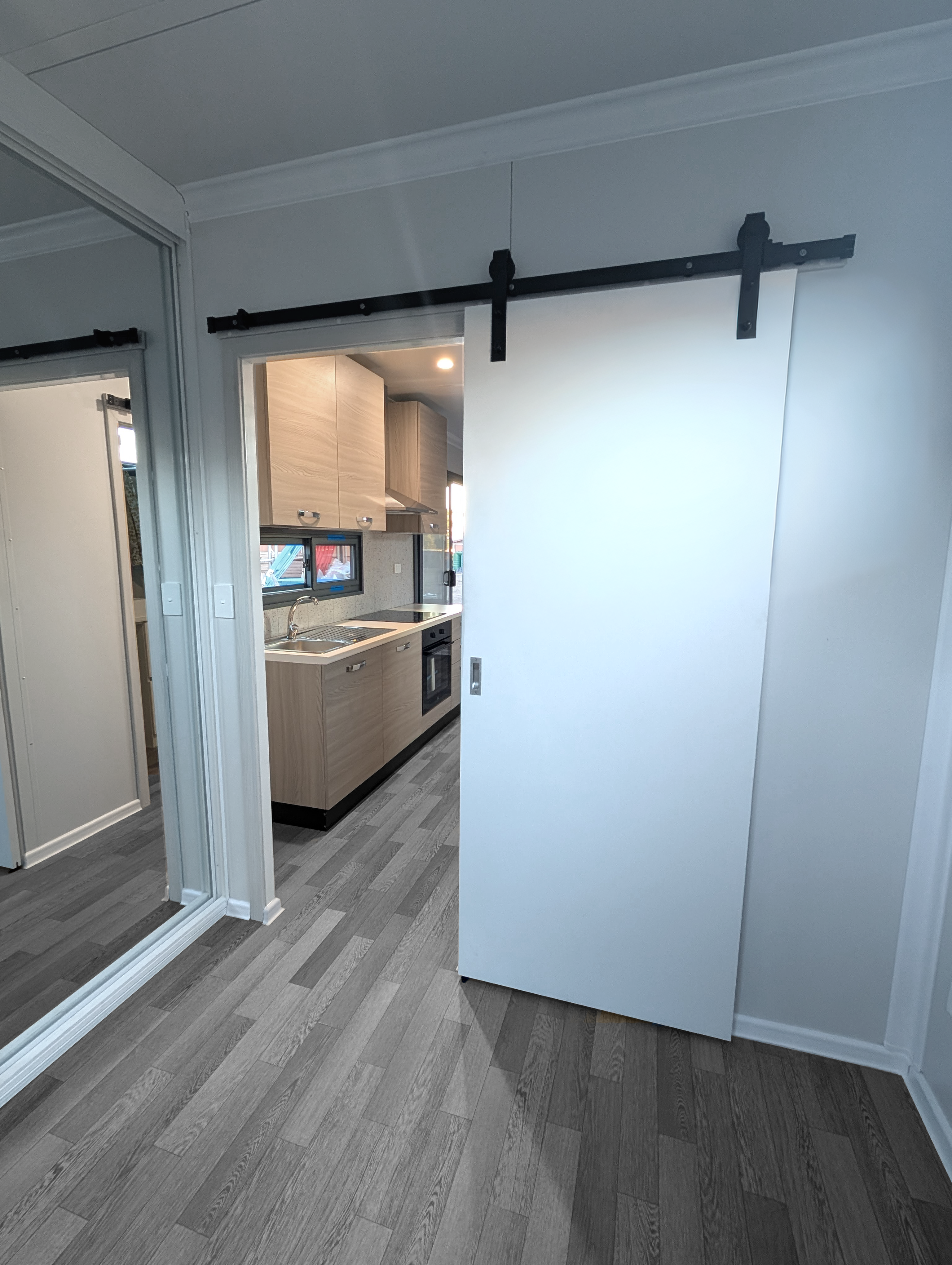 - Barn-style sliding doors